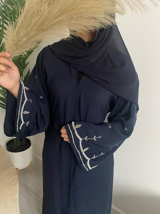 Amanah’s Embroided Handwork Abaya Collection - Black/Navy Blue with Hijab and Belt