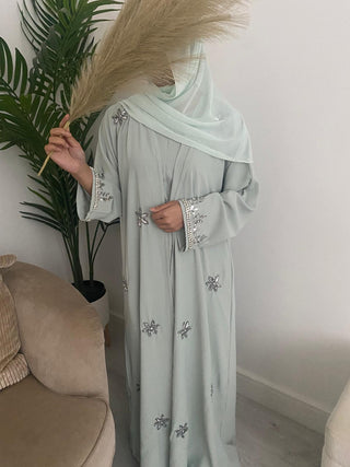 Afsana’s Satin Closed Abaya Collection- Sage Green
