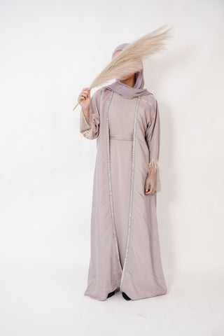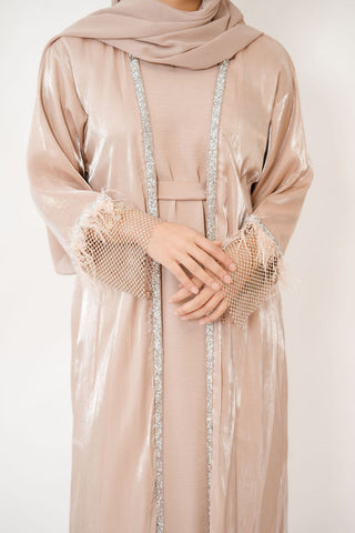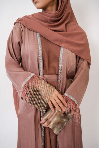 Nahida’s Feather Abaya Collection-Rusty Pink